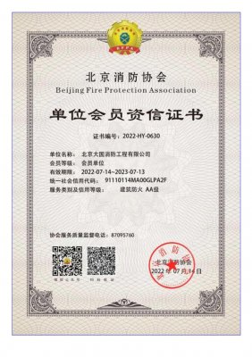 北京消防協會 單位會員資質證書